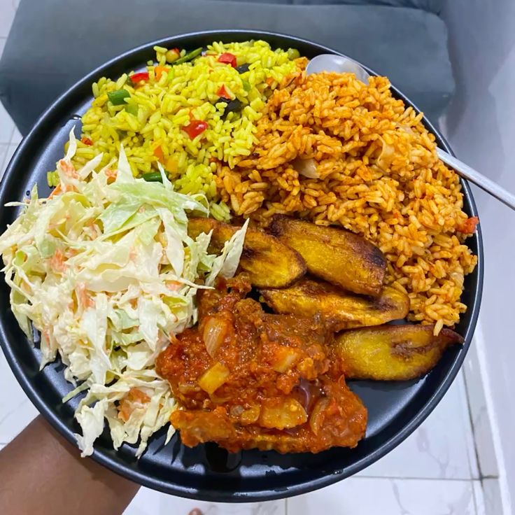 / Jollof Rice and Fried Rice with Plantain, Salad, and Meat