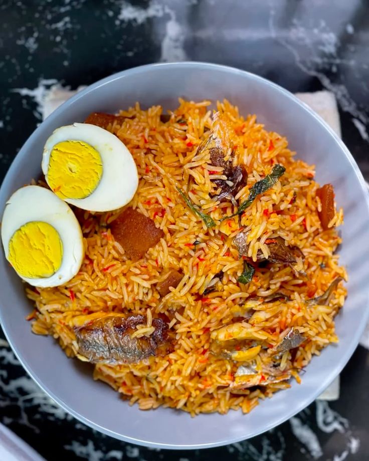 Soft, flavorful rice served with tasty, well-spiced fish that’s cooked to perfection. A hearty, satisfying meal with a rich, home-style taste in every bite.
